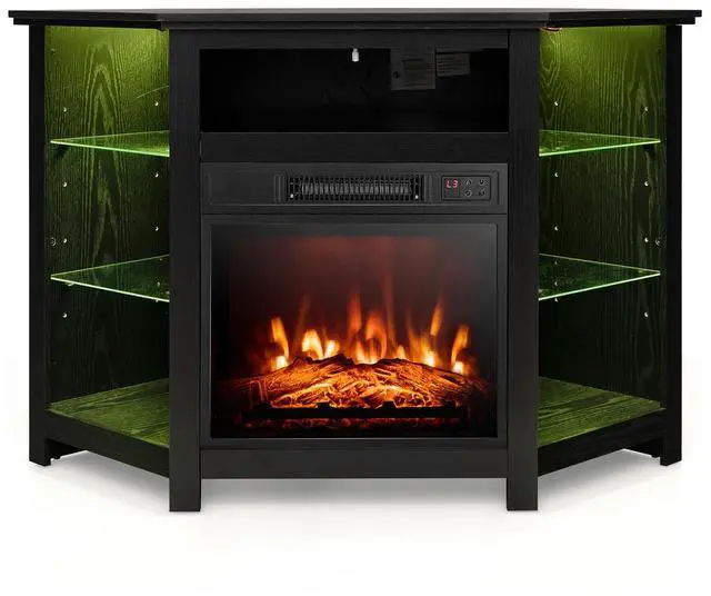 Fireplace Corner TV Stand: This indoor furniture combines TV stand and electric fireplace as one. This 18 inches electric fireplace is designed with 3-level flame brightness (L1/L2/L3) for you to select. And the flame can be used without heat, which means the flame function accompanies you in all seasons.