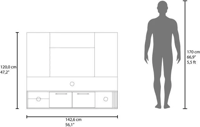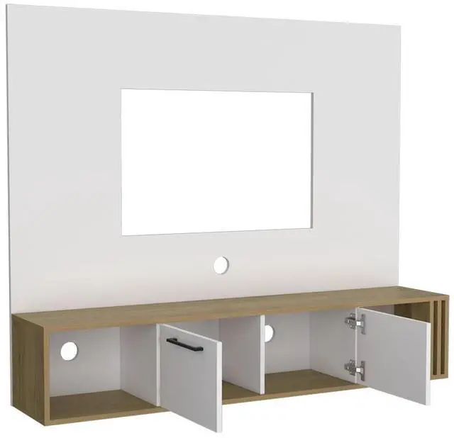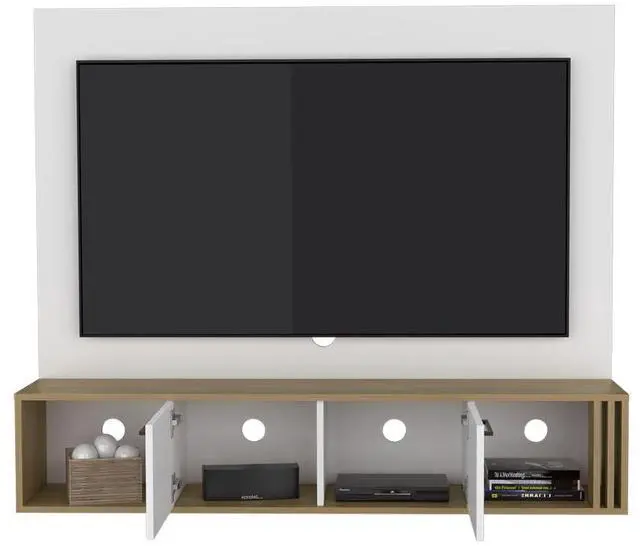 Features two closed cabinets and multiple open shelves to organize your media accessories, books, and décor.