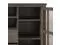 Features two (2) central drawers with metal glides, open center area with adjustable shelf and two (2) side tempered glass framed doors that open to large storage spaces with two (2) shelves each