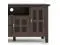Features a large centrally located open area with one (1) flip down drawer, one (1) pull out drawer as well as four (4) storage spaces with tempered glass doors.