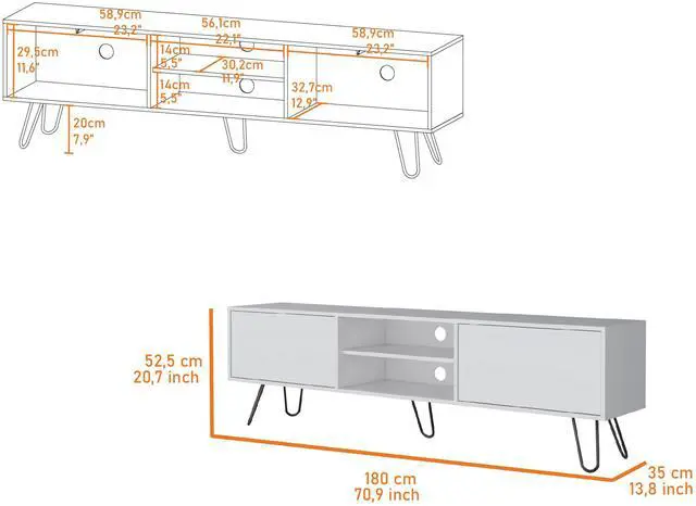 Accommodates up to a 55" TV with its generously sized top surface, ensuring compatibility with a variety of television models