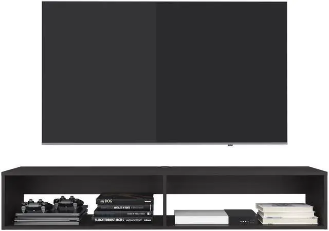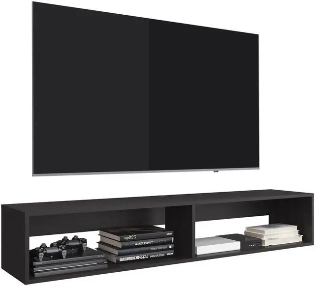Eco 59" Floating Tv Stand with Two Rectangular Shelves Black Wengue