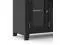 Features a large centrally located open area with one (1) flip down drawer, one (1) pull out drawer as well as four (4) storage spaces with tempered glass doors