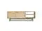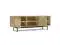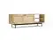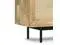 Features two (2) pass-through shelves for easily setting up media equipment and two (2) storage cabinets accented with Woven Raffia panels and contrasting black knobs that open to reveal storage space with two (2) fixed shelves and (2) adjustable shelves.