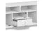 Features a large centrally located open area with one (1) flip down drawer, one (1) pull out drawer as well as four (4) storage spaces with tempered glass doors