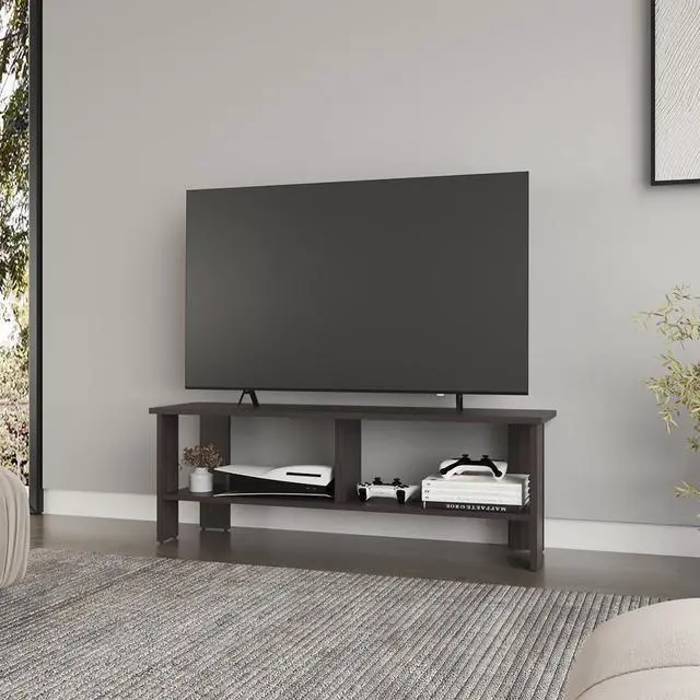 Includes two open shelves for convenient storage of electronics, gaming consoles, and decor.