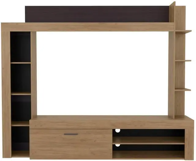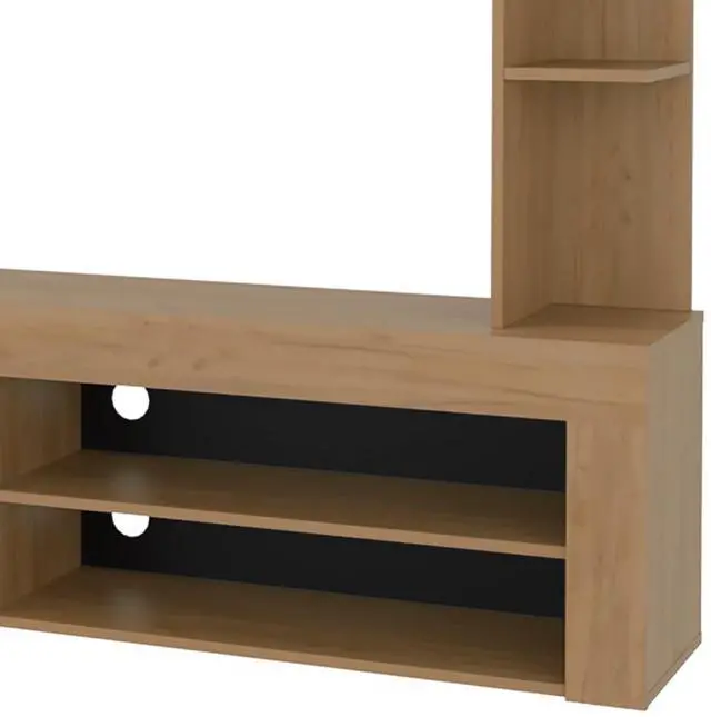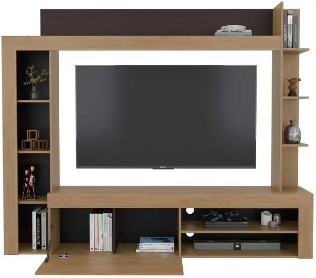Multiple shelves provide generous space for displaying decorative pieces, organizing media collections, or keeping essential electronics accessible