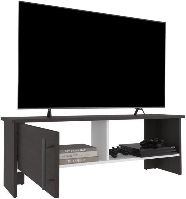 Navia 47" Wide Tv Stand with One Door Cabinet and Open Shelf for Living Room, Entertainment Center Dark Walnut - White