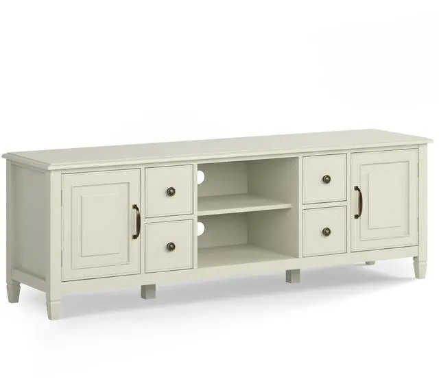 Extra wide TV Stand is perfect for TVs up to 80 inches, features cord management cut-outs for easy installation of TV and media components
