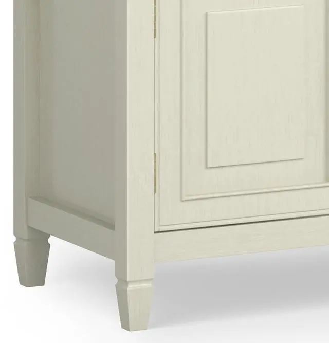 Traditional style Includes vintage raised panel doors and drawers, notched legs, Bronze decorative hardware and metal drawer glides