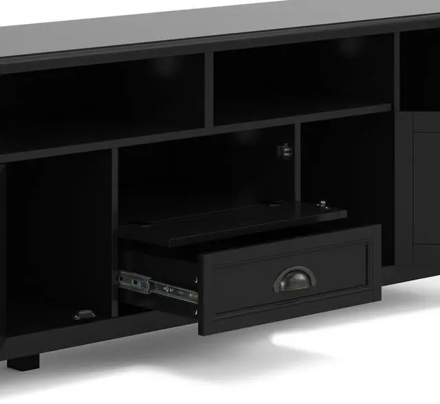 Extra wide TV Stand is perfect for TVs up to 80 inches, features cord management cut-outs for easy installation of TV and media components