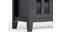 Features a large centrally located open area with one (1) flip down drawer, one (1) pull out drawer as well as four (4) storage spaces with tempered glass doors.