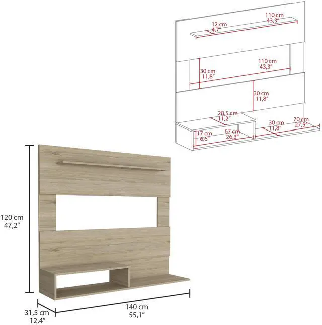 Beijing Floating Entertainment Center, One Superior Shelf, Two Shelves, Space For The TV´s up 55" -Light Pine