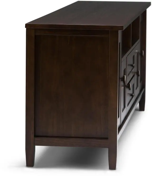 Extra wide TV Stand is perfect for TVs up to 80 inches, includes cord management cut-outs for easy installation of TV and media components.