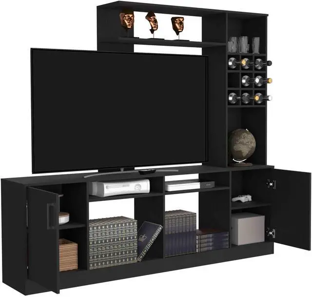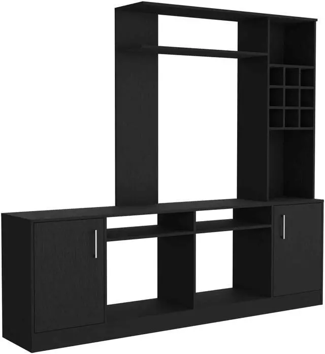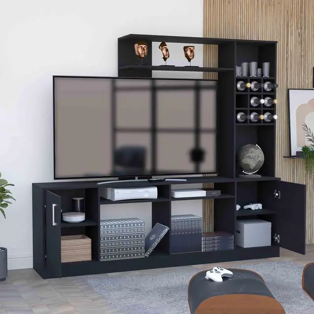 Kava Entertainment Center, Six External Shelves, Double Door Cabinet, Storage Spaces for TV´s up 37" -Black