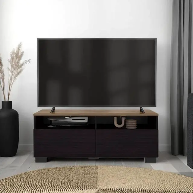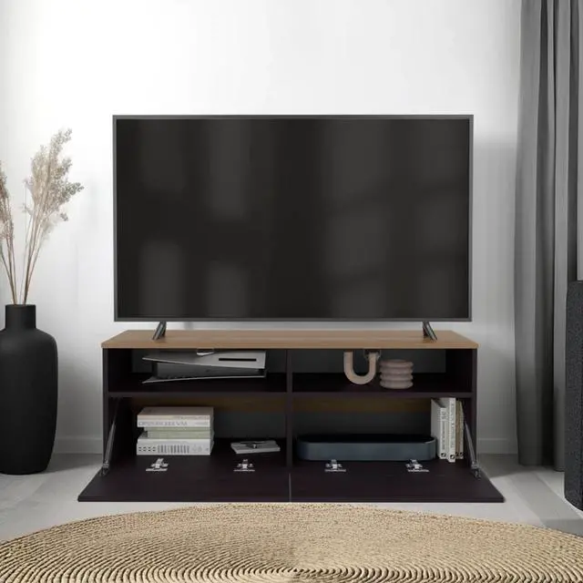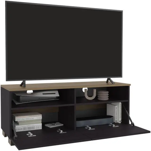 Two open shelves provide easy access to your cable box, gaming console, speakers, or home accessories while keeping everything organized.
