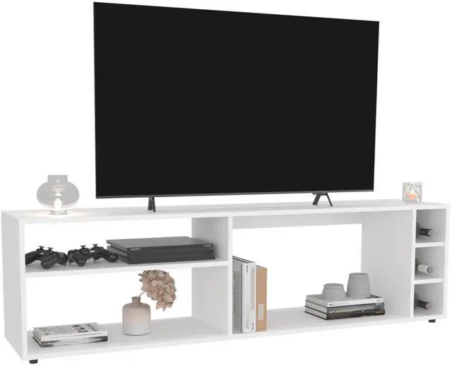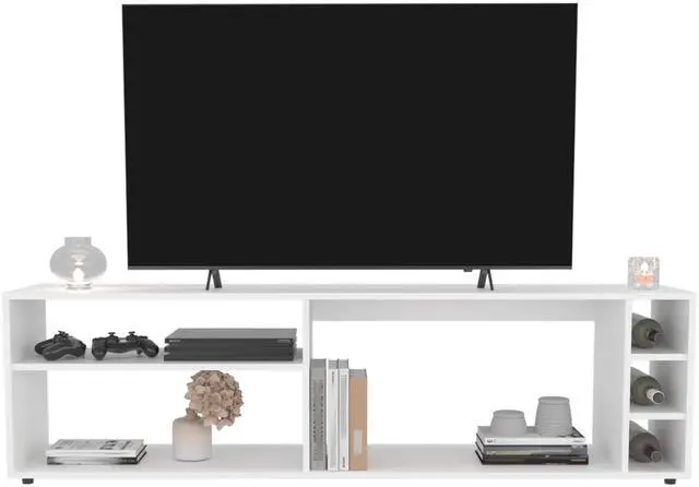Suxta 63" Wide Tv Stand with Three Open Shelves and Three Bottle Cubbies, Cable Management, Bar Tv Stand, Living Room, Tv Room