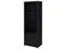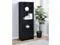Modern media tower features a sleek black finish that enhances contemporary living spaces with stylish appeal