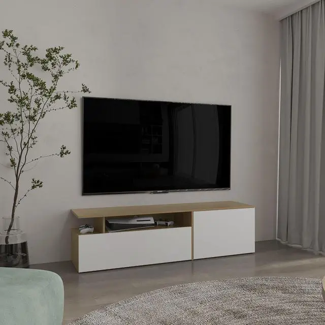 Floating Design: Modern wall-mounted unit that saves floor space and adds a sleek look to your living room.