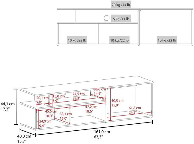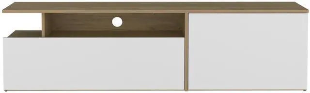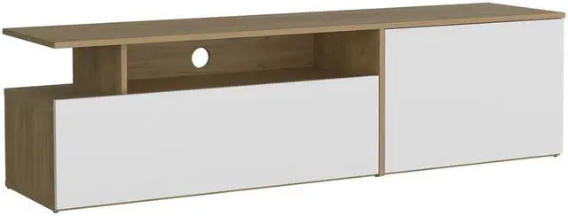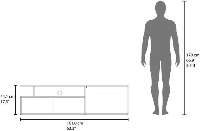 Ample Display Space: Features six open shelves for displaying decorative items, books, and media devices.