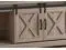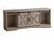 Modern-farmhouse style 60-inch TV stand with open and closed storage in a dark taupe wood-look finish
