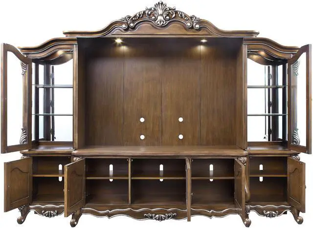 Floral Trim, Touch Light Included, Tempered Glass Doors & Shelves, Cord Management Included, Max