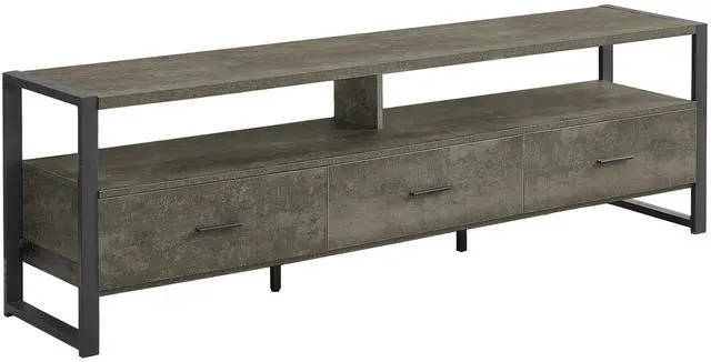 Features 2 open storage shelves for media devices and 3 storage drawers on metal glides for entertainment essentials.