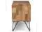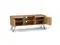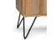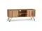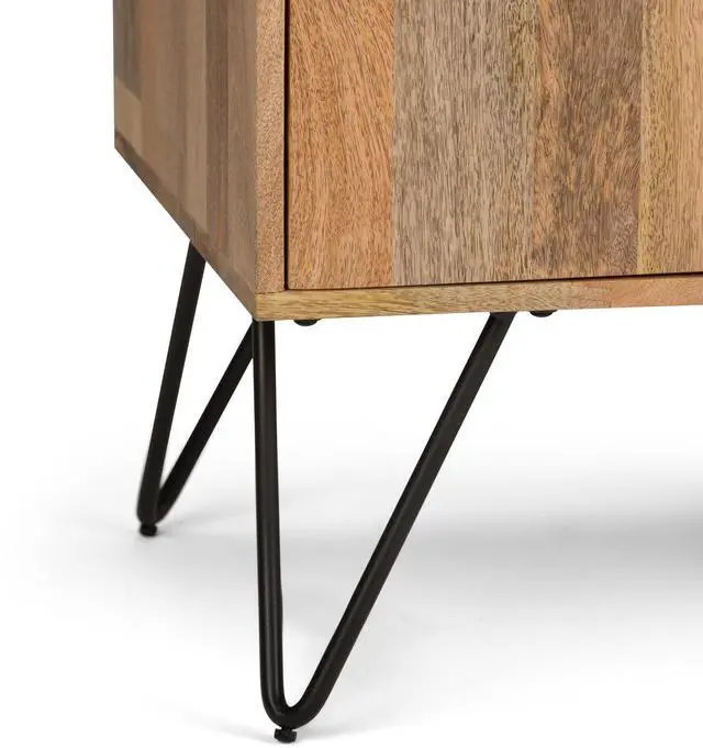 Features two (2) side cabinets with two (2) adjustable shelves and soft closing hinges with open central space with one (1) shelf and four (4) black iron hairpin legs