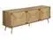 With mid-century modern inspiration, this 72-inch long tv stand in a light walnut laminate finish and accented with natural seagrass material on the cabinet doors for a casually chic vibe.