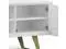 Features two (2) Doors with discreet hand pulls, open central area with adjustable shelving and solid metal angled legs in a gold finish for reliable support