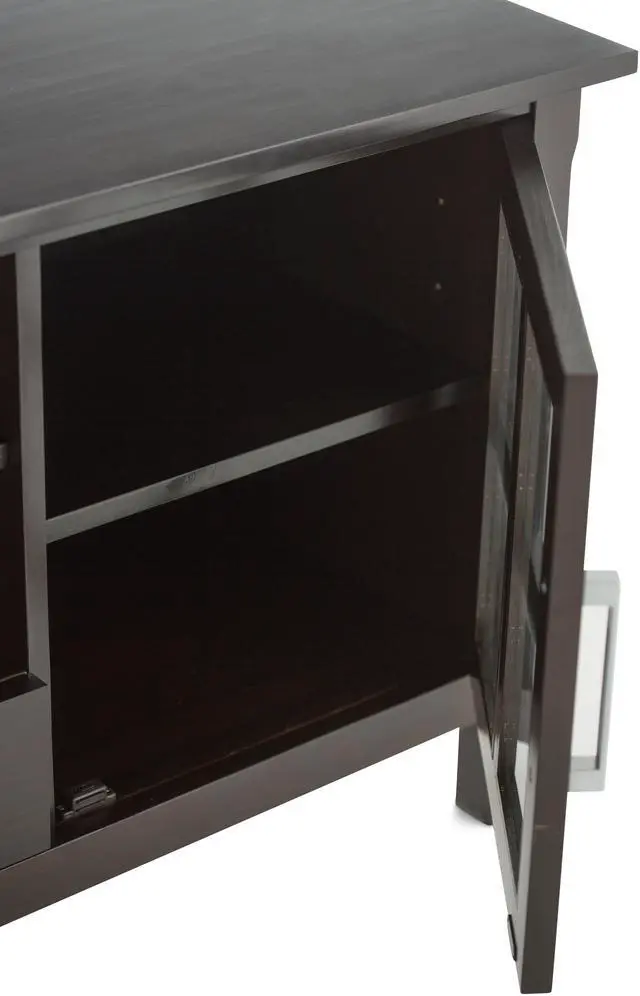 Features two (2) door side cabinets with tempered glass door panels that open to adjustable shelves, a central area that includes two (2) open shelves and two (2) drawers with plenty of storage.