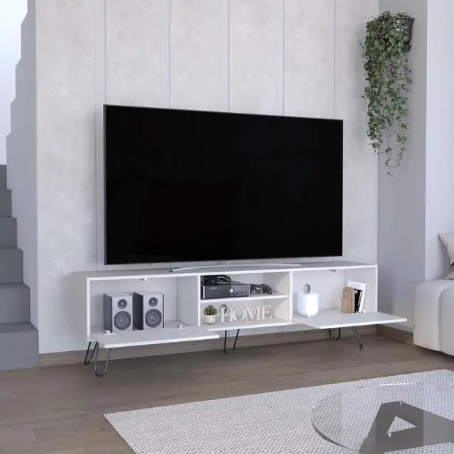 Central Open Shelves: Ideal for consoles or players, featuring cable management.