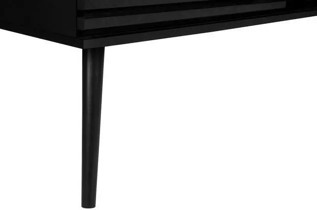 Durably designed with solid wood legs and vertical paneling on the storage cabinet for a fashionable style with a retro vibe.