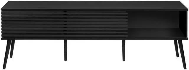 Features 2 sliding doors for flexible closed storage options, fixed storage shelves to showcase audio/visual components or decorative items, and an easy to clean top.