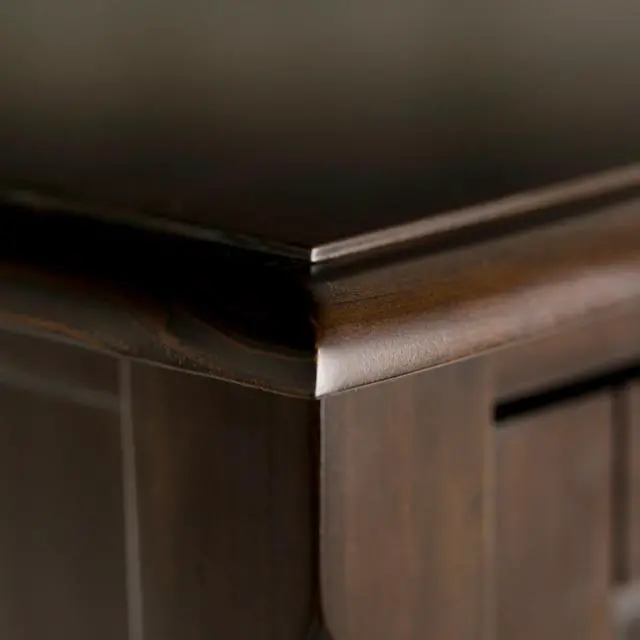 Hand-finished with a Dark Mahogany Brown stain and a protective NC lacquer to accentuate and highlight the grain and the uniqueness of each piece of furniture