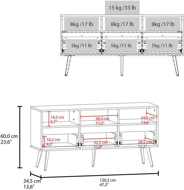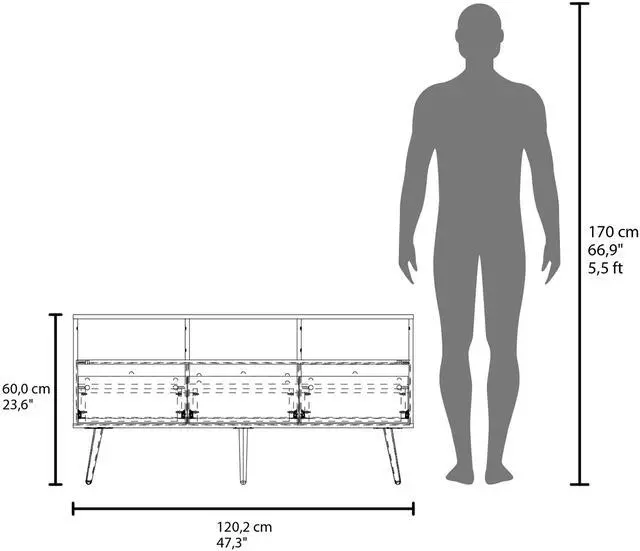 Dimensions: 23, 6" (H) x 47, 3" (W) x 13, 6" (D).