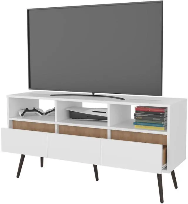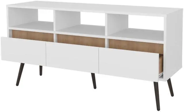 Ample Storage: Includes three open shelves and three drawers to organize electronic devices, accessories, and other items.