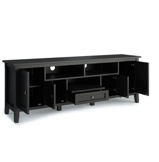 Extra wide TV Stand is perfect for TVs up to 80 inches, includes cord management cut-outs for easy installation of TV and media components.