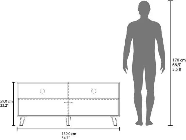 Dimensions: 23, 2" (H) x 54, 7" (W) x 16" (D). "