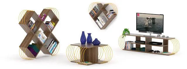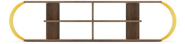 • FurnisHome Store Mid Century Modern Tv Stand 4 Shelves Open Storage Entertainment Centre 68 inch Tv Unit, Walnut/Yellow