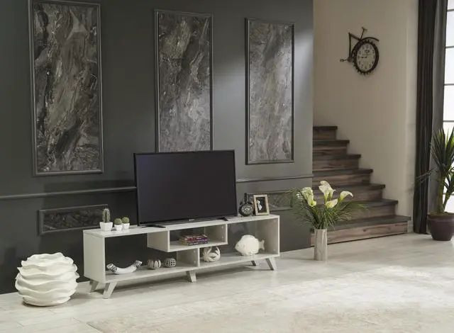 • FurnisHome Store Parma Mid Century Modern Tv Stand Open Shelving Entertainment Centre 67 inch Tv Unit, Grey