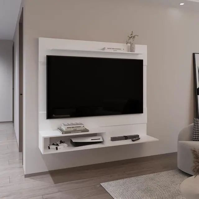 Beijing Floating Entertainment Center, One Superior Shelf, Two Shelves, Space For Tv, White