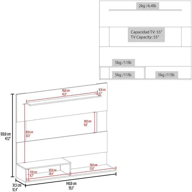 • TVSpace(11,8''HX43,3''W)