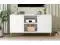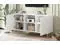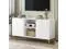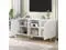 The TV stand has a storage hole on the back panel, allowing for easy cable management and organization, keeping the area behind the cabinet neat and free from tangled wires.