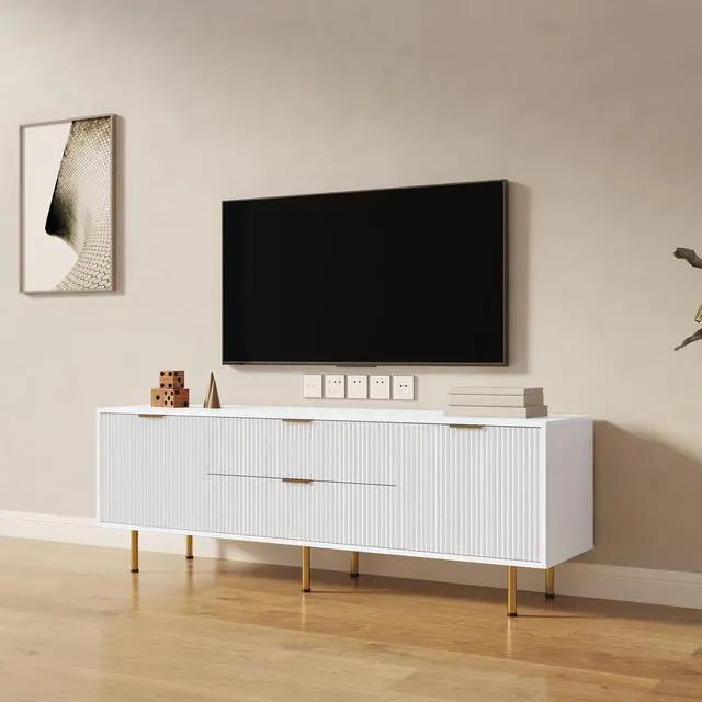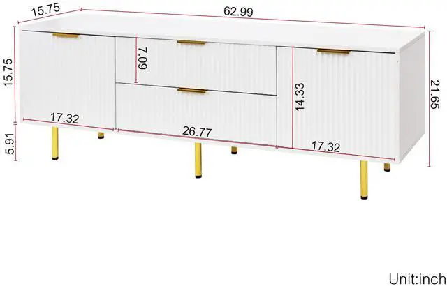 Two drawers modern warm white TV cabinet Product size: W 63.00 *D 15.75 *H 23.62 in