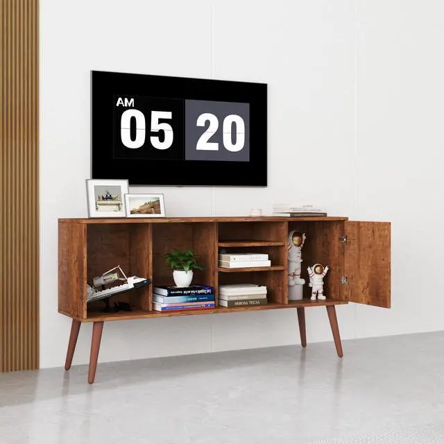 Durable&Sturdy frame: This TV stand with rich textured veneer not only gives an attractive modern look but also features superior stability and its resistance against wear and tear. Four solid wood legs are used, which can make the cabinet stronger.