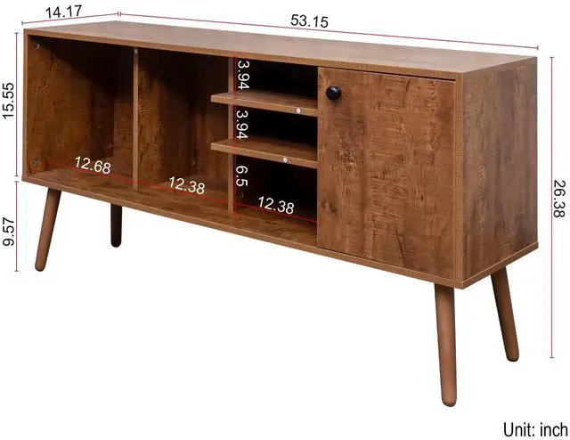Dimensions: 26.38 H x 14.17 D x 53.15 L Have 1 storage and 3 open shelves, which provide more area to storage and display.