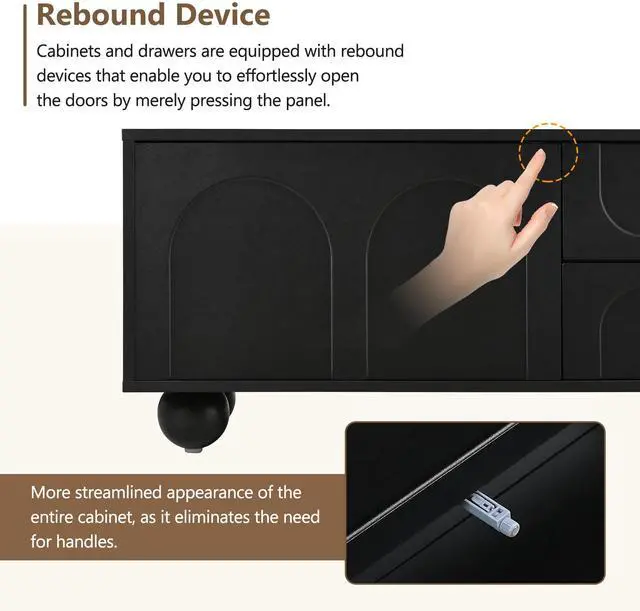 Rebound Device: Cabinets and drawers are equipped with rebound devices that enable you to effortlessly open the doors by merely pressing the panel. This feature not only helps you better access to your belongings but also contributes to a cleaner, more streamlined appearance of the entire cabinet, as it eliminates the need for handles.