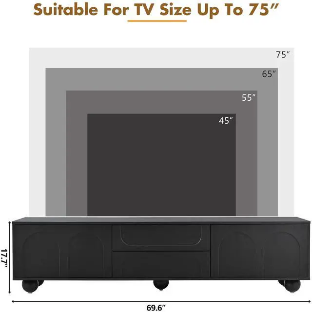 Sleek Appearance: This 69.6W TV cabinet with classic cream color design boasts unique arched panels that reveals a delicate shape in a simple and generous outlook. The bottom is equipped with 5 ball-shaped legs, not only maintaining the stability of the cabinet but also enhancing the overall atmosphere of your living space.