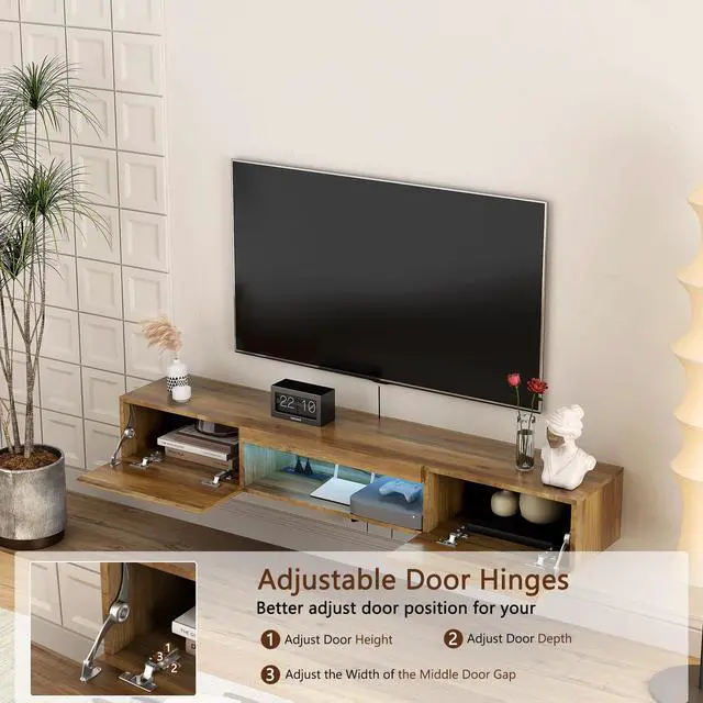 This wall mounted TV stand has a large storage space, perfect for storing TV components, game accessories, books and decorations. You can also place living room decorations on the TV stand.